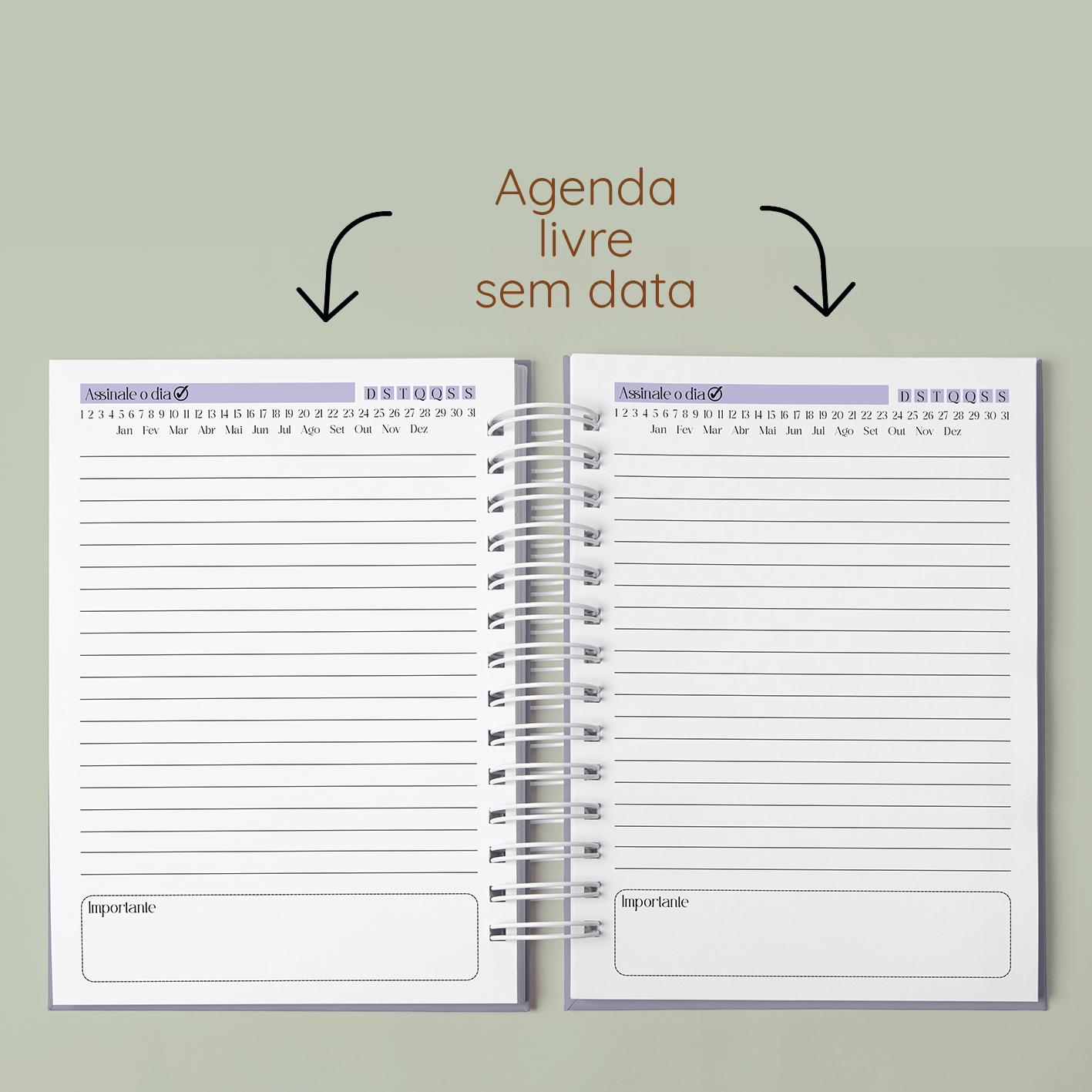 Tenha mais organização e praticidade com nossa Agenda Planner Sem Data, perfeita para quem busca flexibilidade no dia a dia. Com páginas iniciais de planner para planejamento anual e mensal, seguida de agenda sem data, você pode começar a usar em qualquer época do ano.