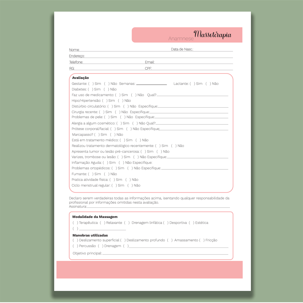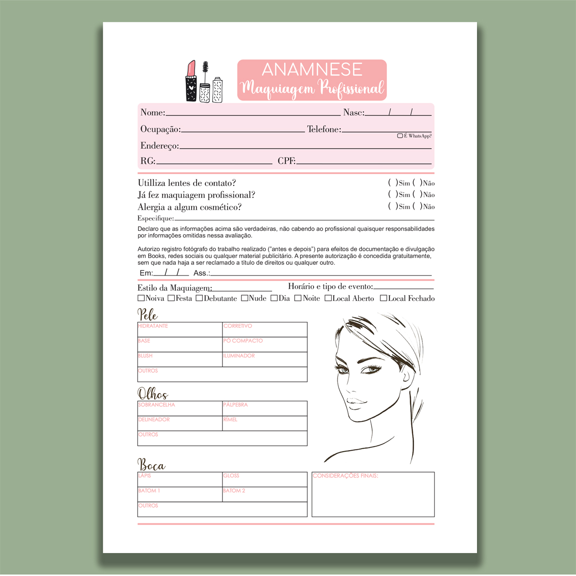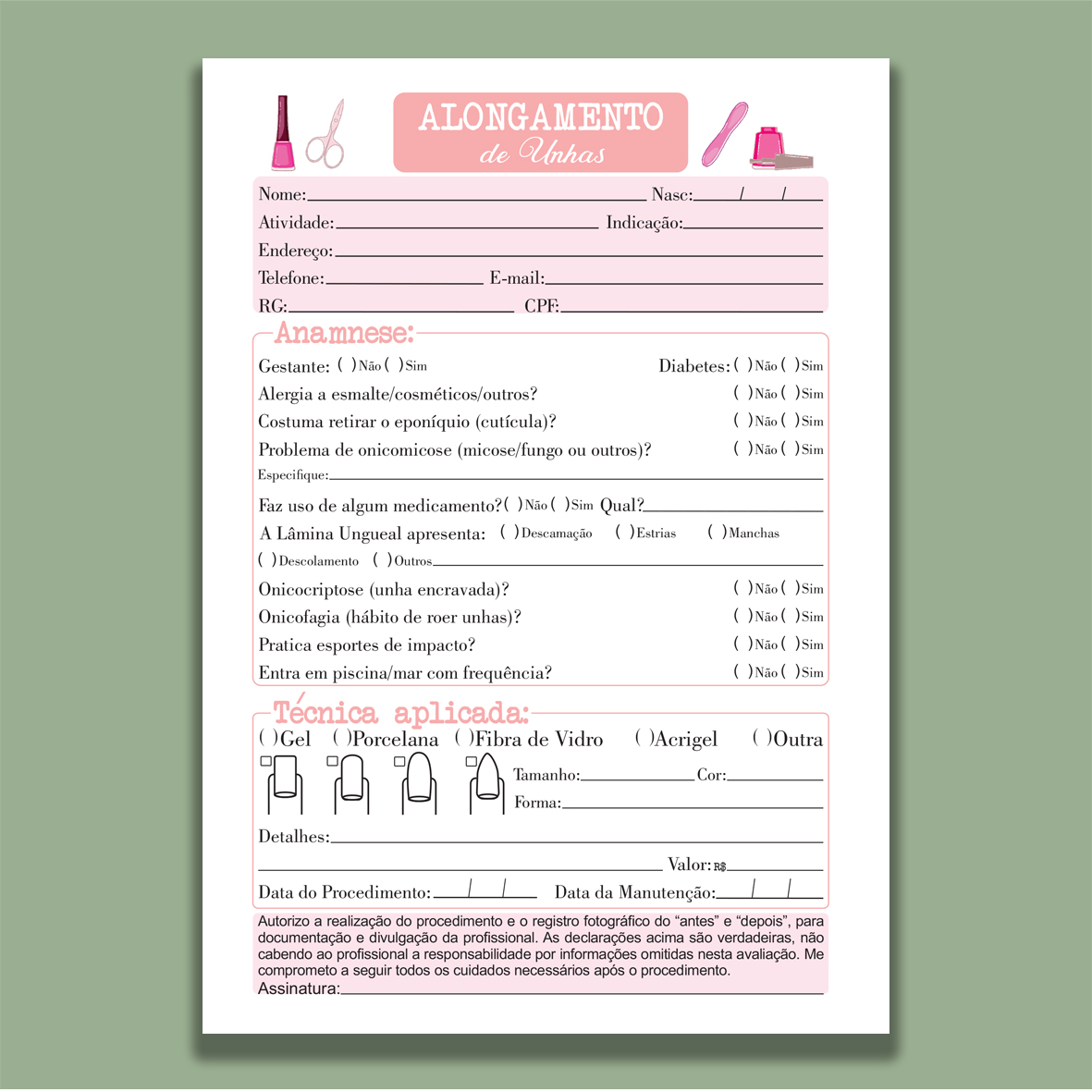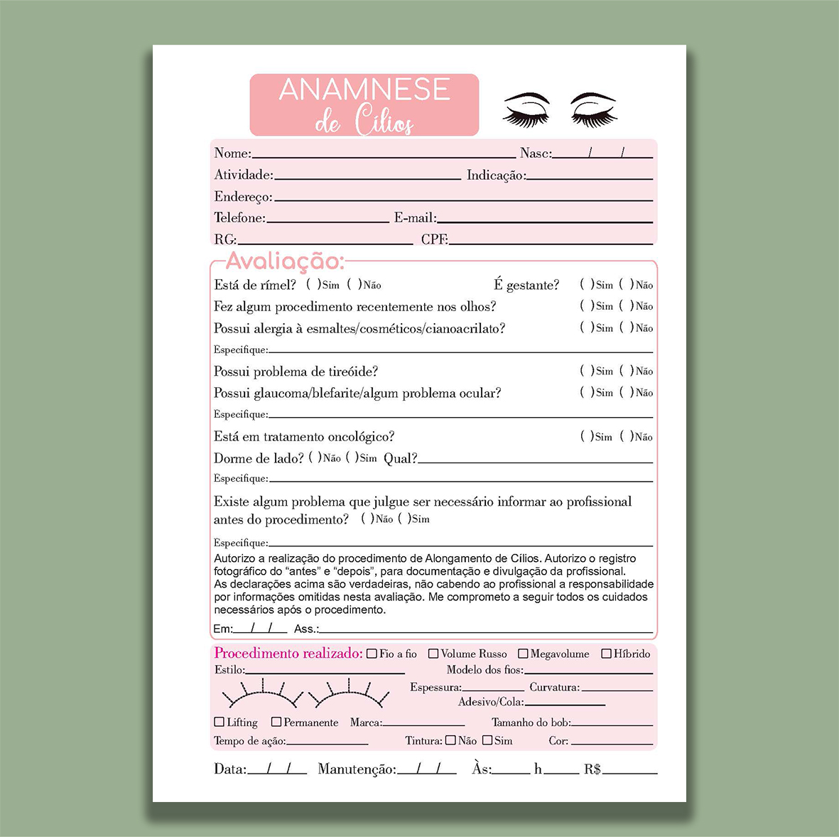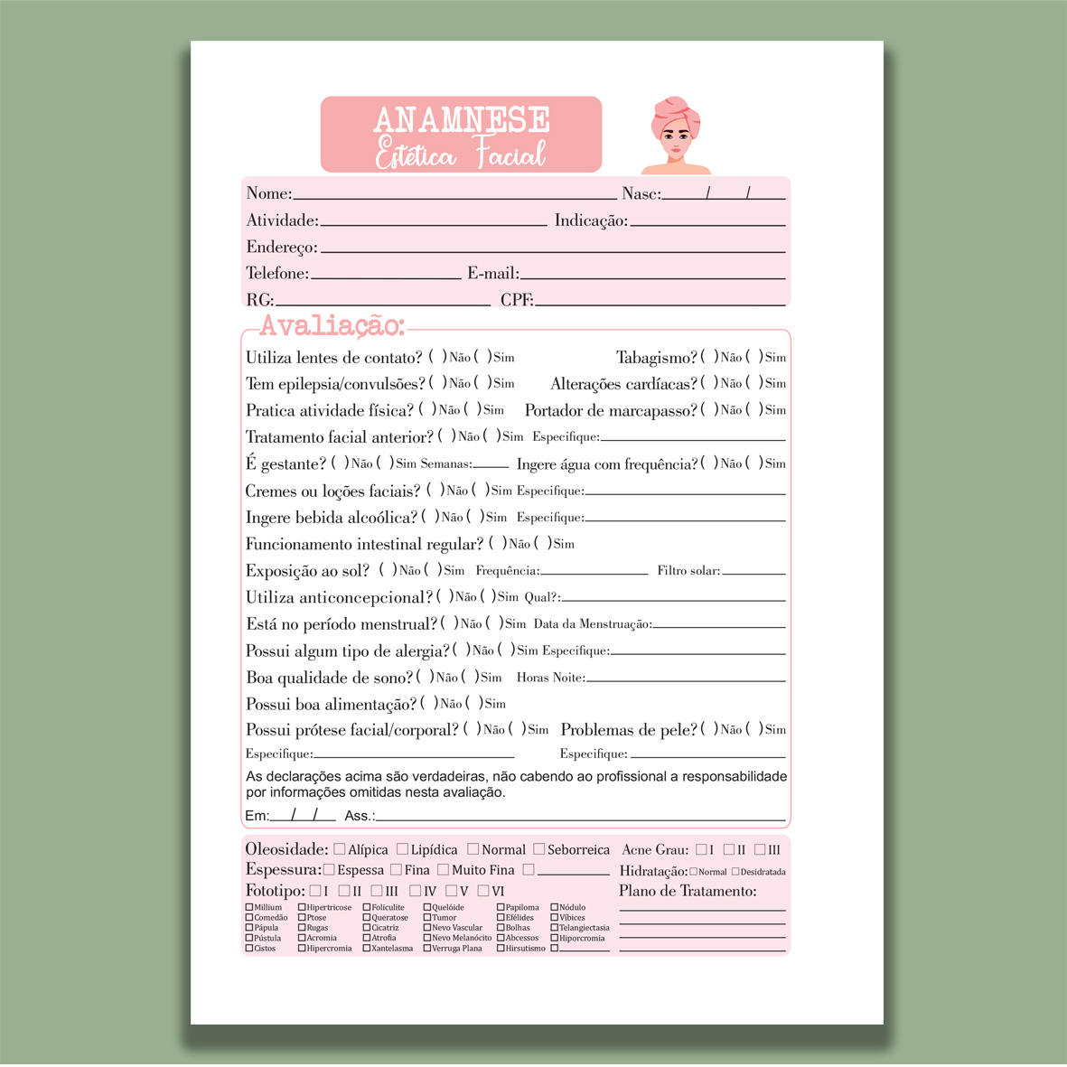 Organize suas consultas com praticidade e profissionalismo usando nosso bloco de anamnese encadernado. Ideal para consultórios, clínicas, estúdios de estética, fisioterapia e outras áreas da saúde, ele garante registros claros e seguros das informações dos clientes ou pacientes.