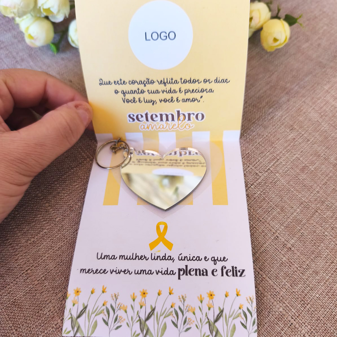 Este kit de cartão e chaveiro de coração é a escolha ideal para quem busca uma forma criativa e sensível de participar do Setembro Amarelo e incentivar a importância da vida.
